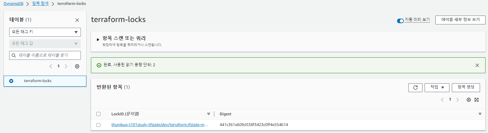 DynamoDB 잠금을 사용하기 위해서는 LockID 라는 기본 키가 있는 테이블을 생성