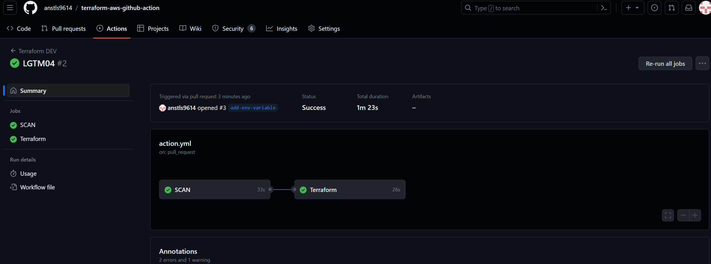- Run terrascan : 테라폼 코드 검증 도구인 Terrascan을 실행