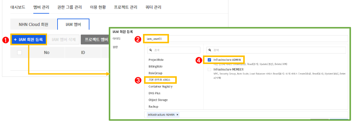 - 회원 가입 절차에 따라 계정 생성을 한 계정은 "NHN Cloud 회원"