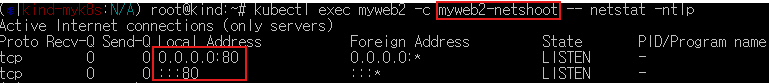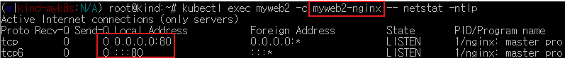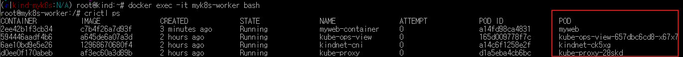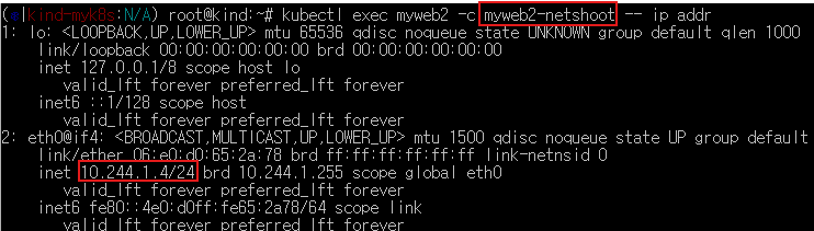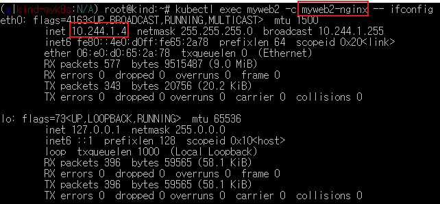 pod내 두 개의 컨테이너 ip 확인시 같은 것을 알 수 있다.